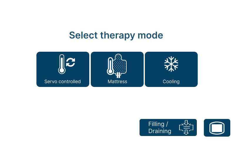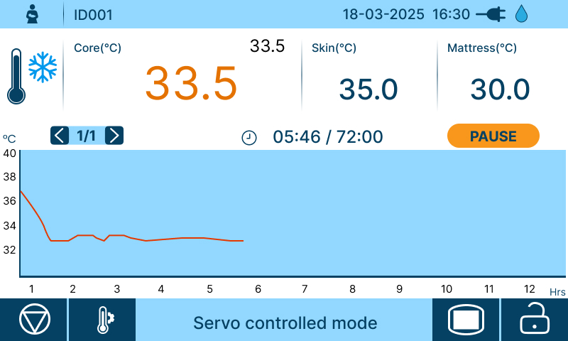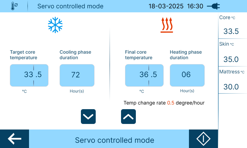 - Servo-controlled full hypothermia cycle, constant mattress and patient warming / cooling modes